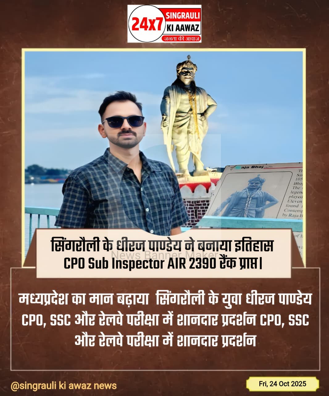 सिंगरौली के धीरज पाण्डेय ने बनाया इतिहास – CPO Sub Inspector AIR 2390 रैंक प्राप्त!
